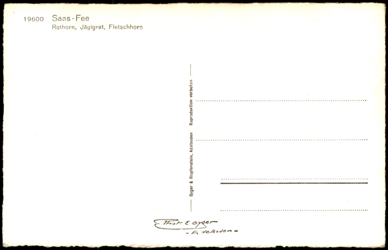 Ansichtskarte: Stadtblick Rothorn, Jägigrat, Fletschhorn - Saas-Fee