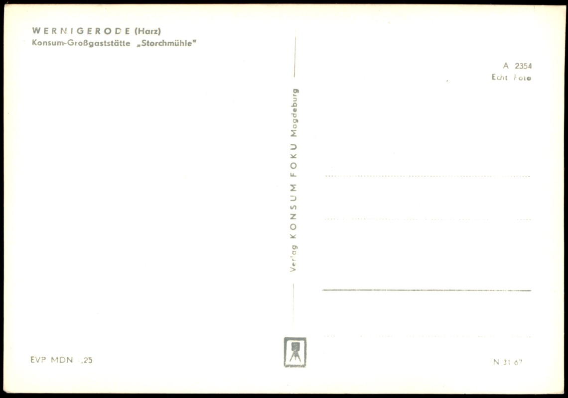 Foto Karte: Konsum-Gastgaststätte Storchmühle zur DDR-Zeit - Wernigerode