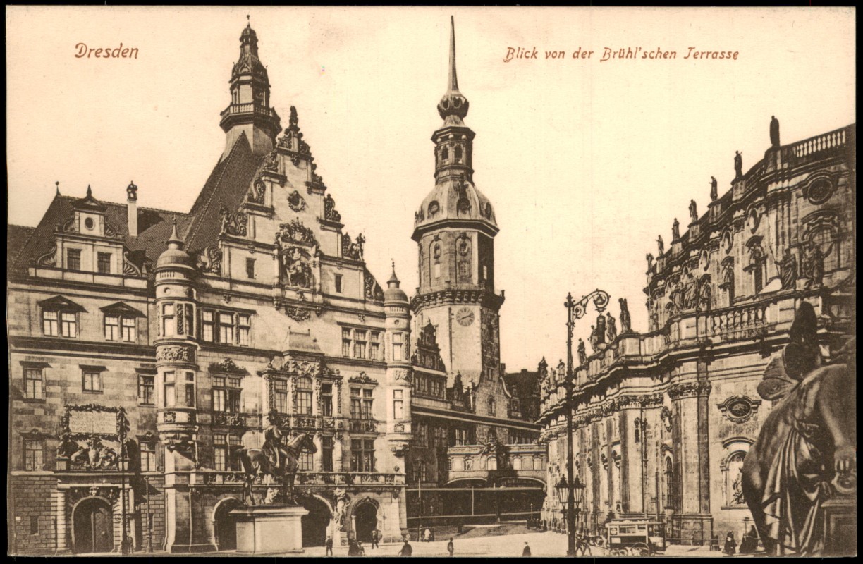 Ansichtskarte: von der Brühl'schen Terrasse Schloß Fuhrwerk - Innere Altstadt-Dresden