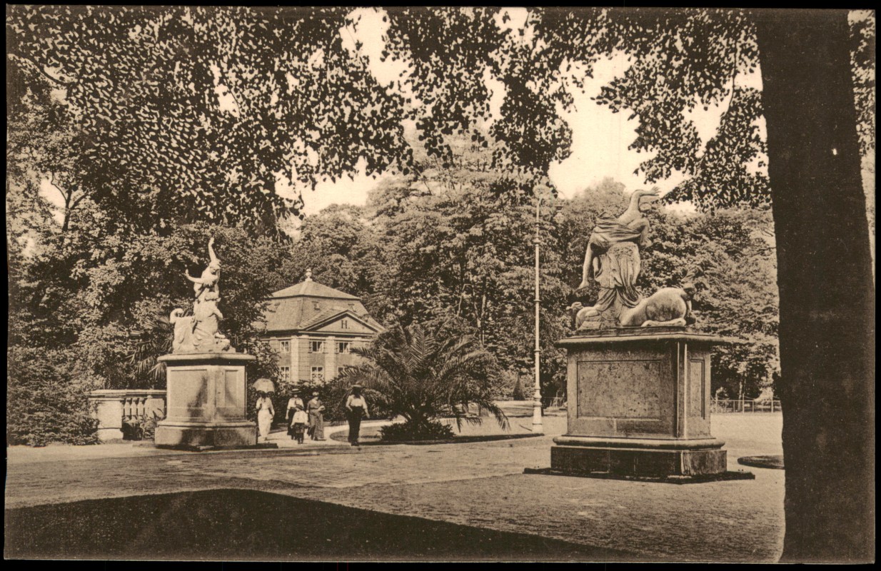 - Partie im Kgl. Großen Garten Eingang Statuen