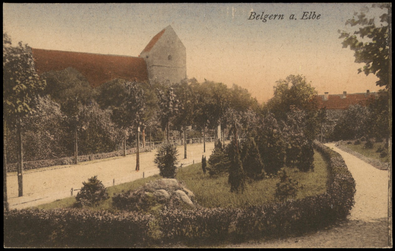 Ansichtskarte: Stadtaprtei an der Kirche - Belgern