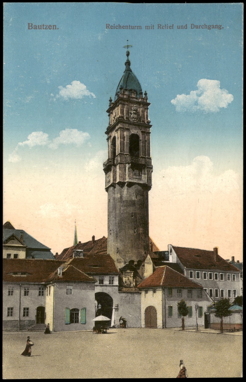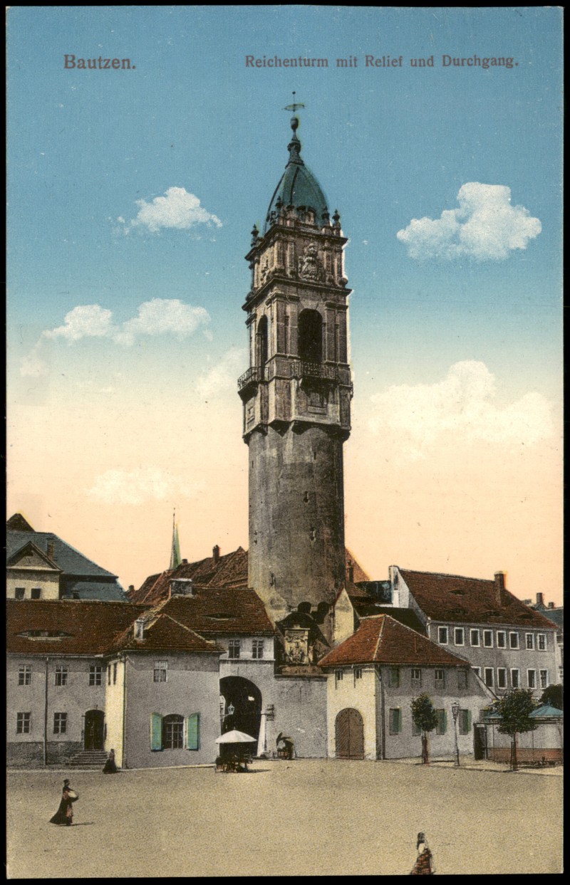 Ansichtskarte: Reichenturm mit Relief und Durchgang. - Bautzen