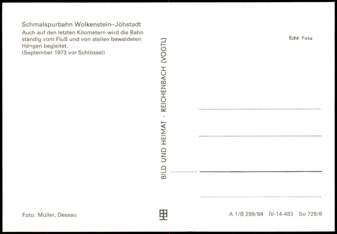 Foto Karte: Schmalspurbahn Wolkenstein-Jöhstadt vor Schlössel 1973 - .Sachsen