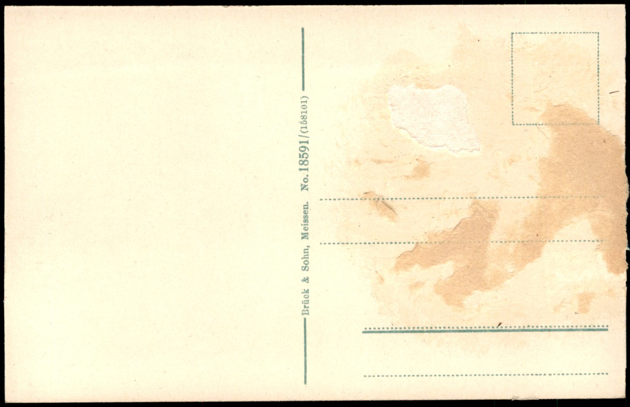 auf der Rückseite Kleberückstände und abgerissenes Papier