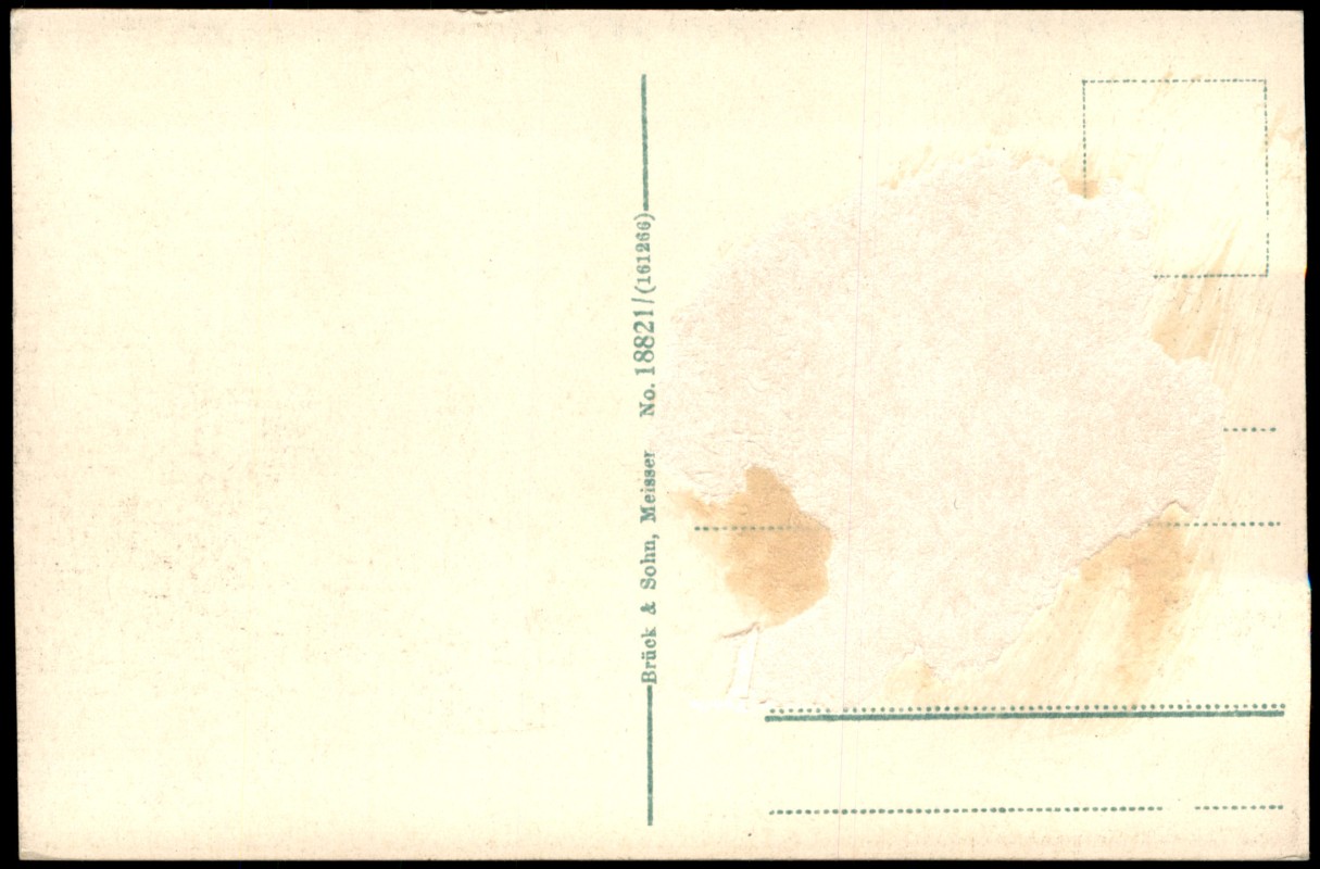 auf der Rückseite Kleberückstände und abgerissenes Papier