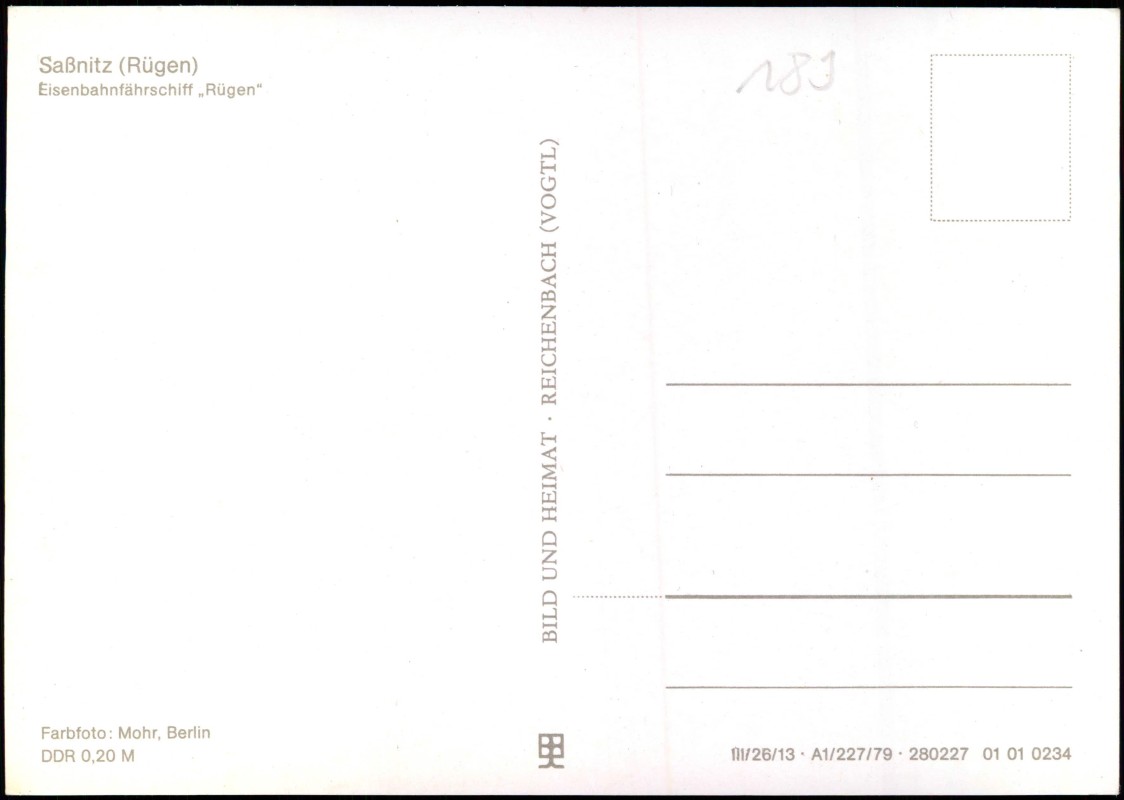 Ansichtskarte: Eisenbahnfährschiff "Rügen" - Sassnitz Rügen