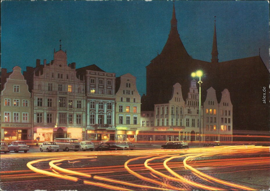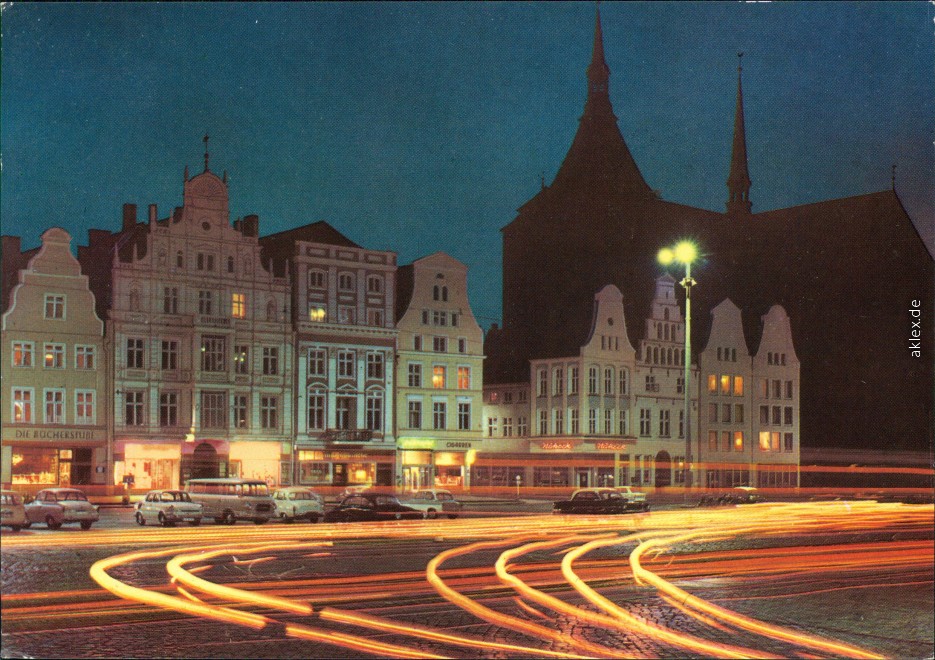 Ansichtskarte: Neuer Markt - Marktplatz - Ernst-Thälmann-Platz bei Nacht (Langzeit Belichtung) - Rostock