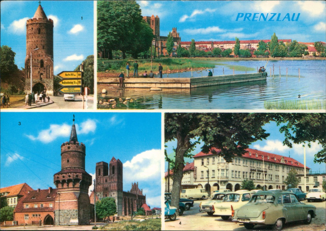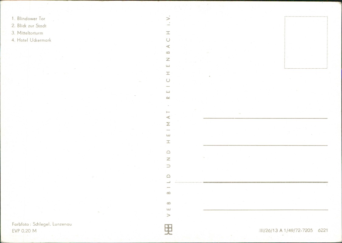 Ansichtskarte: Blindower Tor, Stadtblick, Mitteltorturm, Hotel Uckermark - Prenzlau