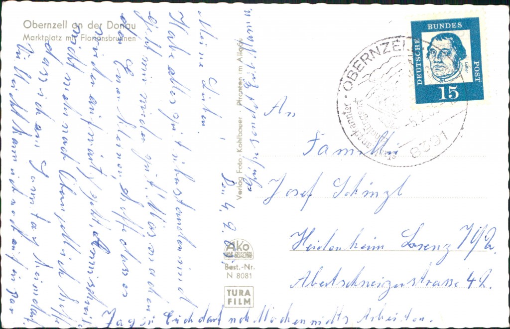 Ansichtskarte: Marktplatz mit Floriansbrunnen - Obernzell