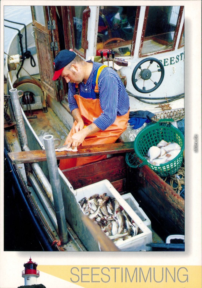 Ansichtskarte Seestimmung - Fischer auf dem Kutter 1995