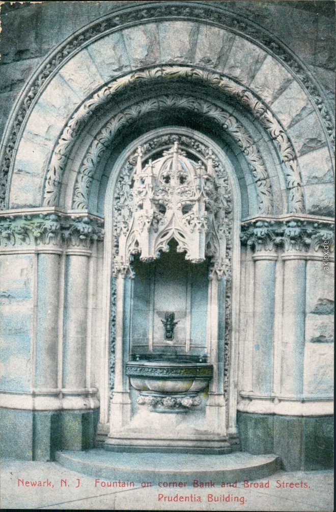 Ansichtskarte: Fountain on corner Bank and Broads Streets - Prudentia Building - Newark