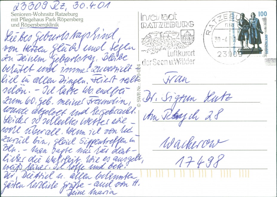 Ansichtskarte: Luftbild vom Senioren-Wohnsitz - Ratzeburg