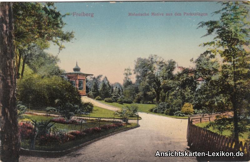 Ansichtskarte: Malerische Motive aus den Parkanlagen - Freiberg (Sachsen)