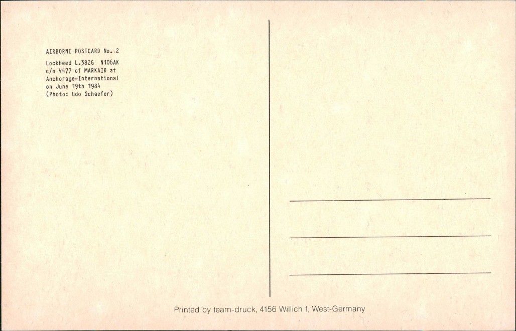 Ansichtskarte: Propellerflugzeug Lockheed L.3826 N106AK c/n 4477 of MARKAIR