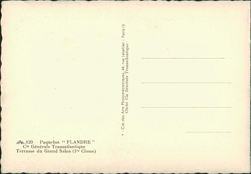 Foto Karte: Schiff Ship Paquebot FLANDRE Terrasse Grand Salon 1. Klasse