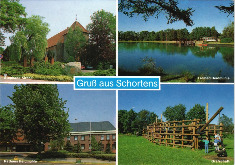 Ansichtskarte: 4 Bild: Heidmühle, Kirche - Schortens