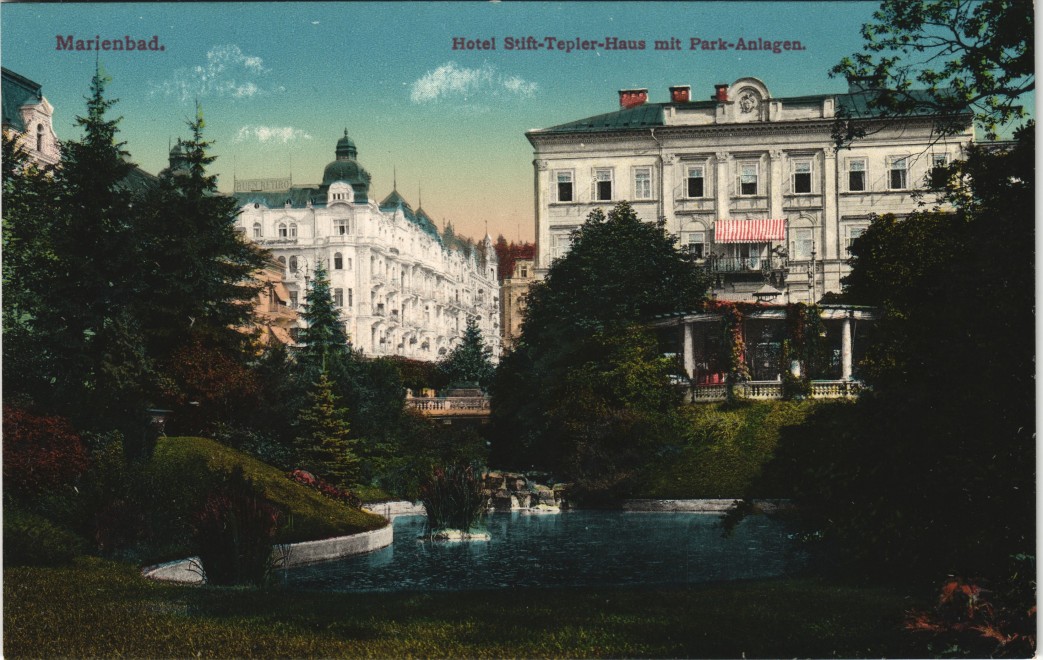 Ansichtskarte: Hotel Stift-Tepler-Haus mit Park-Anlagen. - Marienbad