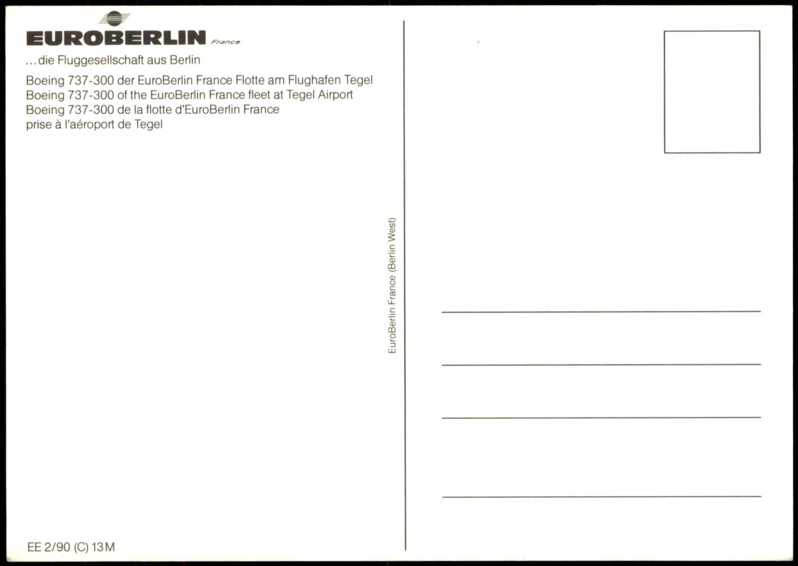 Foto Karte: Flugwesen Aviation Flugzeug Boeing 737-300 EuroBerlin in Tegel