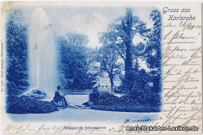 Ansichtskarte: Fontaine auf Schloßgarten - Karlsruhe