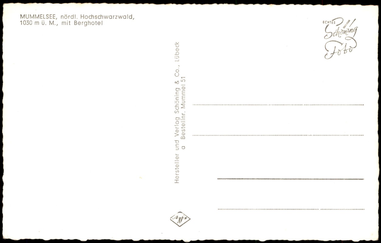 - Ansichtskarte Seebach MUMMELSEE nörd. Hochschwarzwald mit Berghotel 1960
