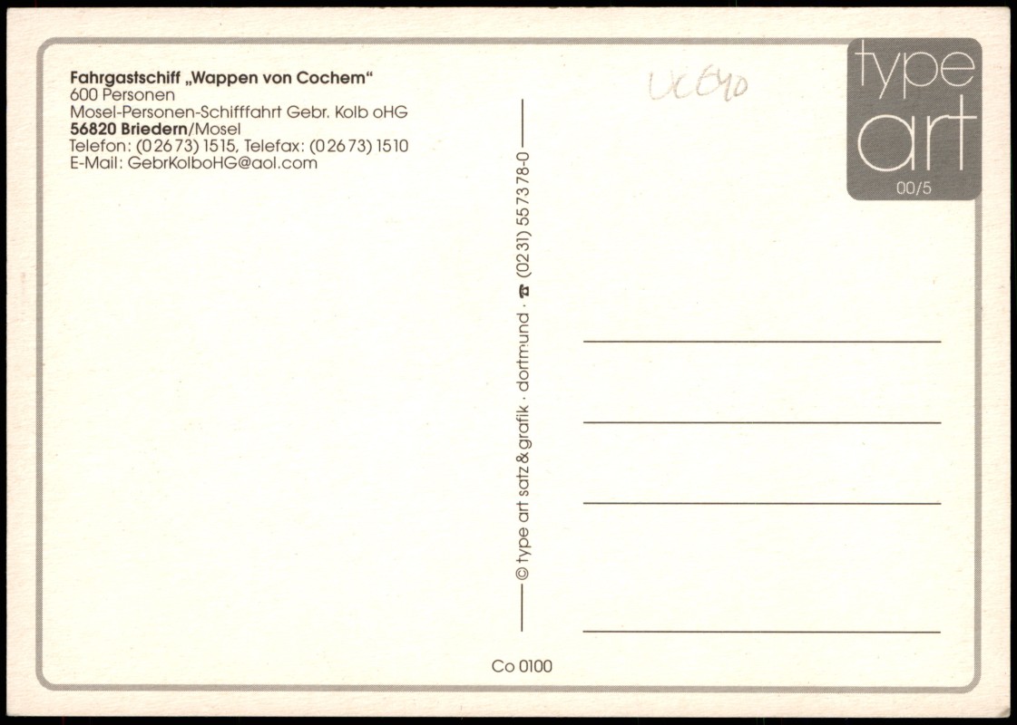 Foto Karte: Panorama Mosel mit Fahrgastschiff „Wappen von Cochem" - Briedern