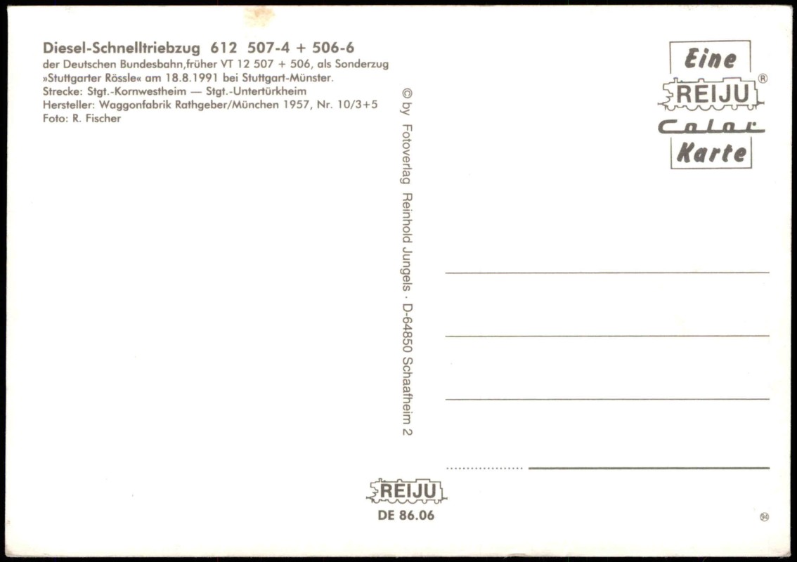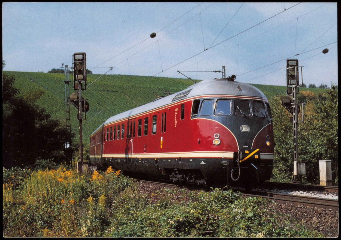 Foto Karte: Diesel-Schnelltriebzug der Deutschen Bundesbahn als Sonderzug Stuttgarter Rössle bei Stuttgart-Münster