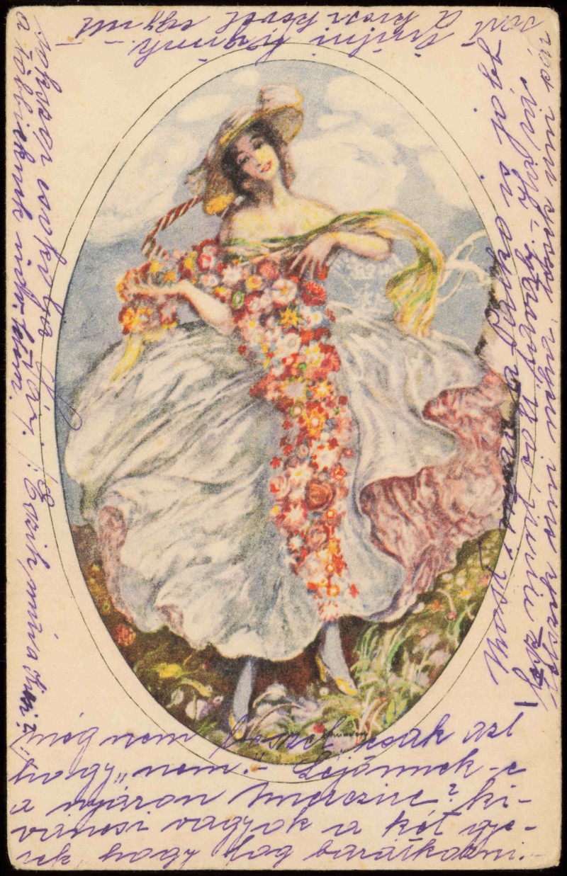 Ansichtskarte: Künstlerkarte schöne Frau im Blumengewand