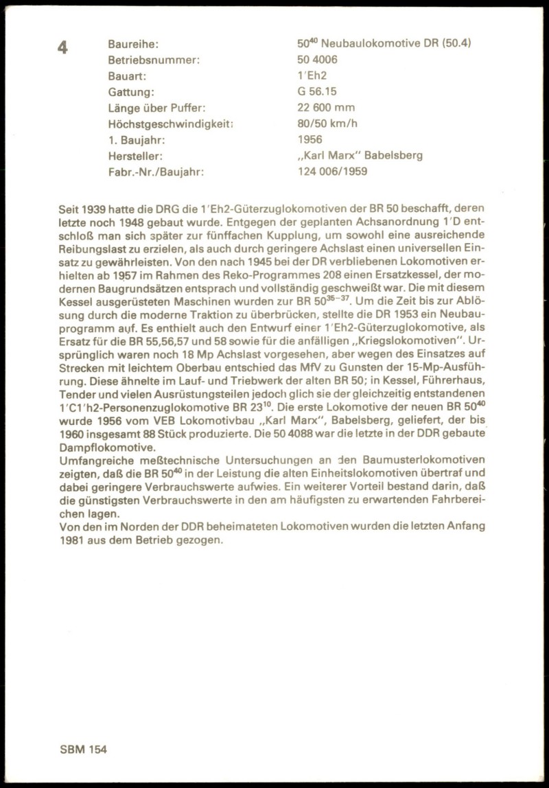 - Neubaulokomotive DR 50.4 Dampflokomotive Fotosammelkarte