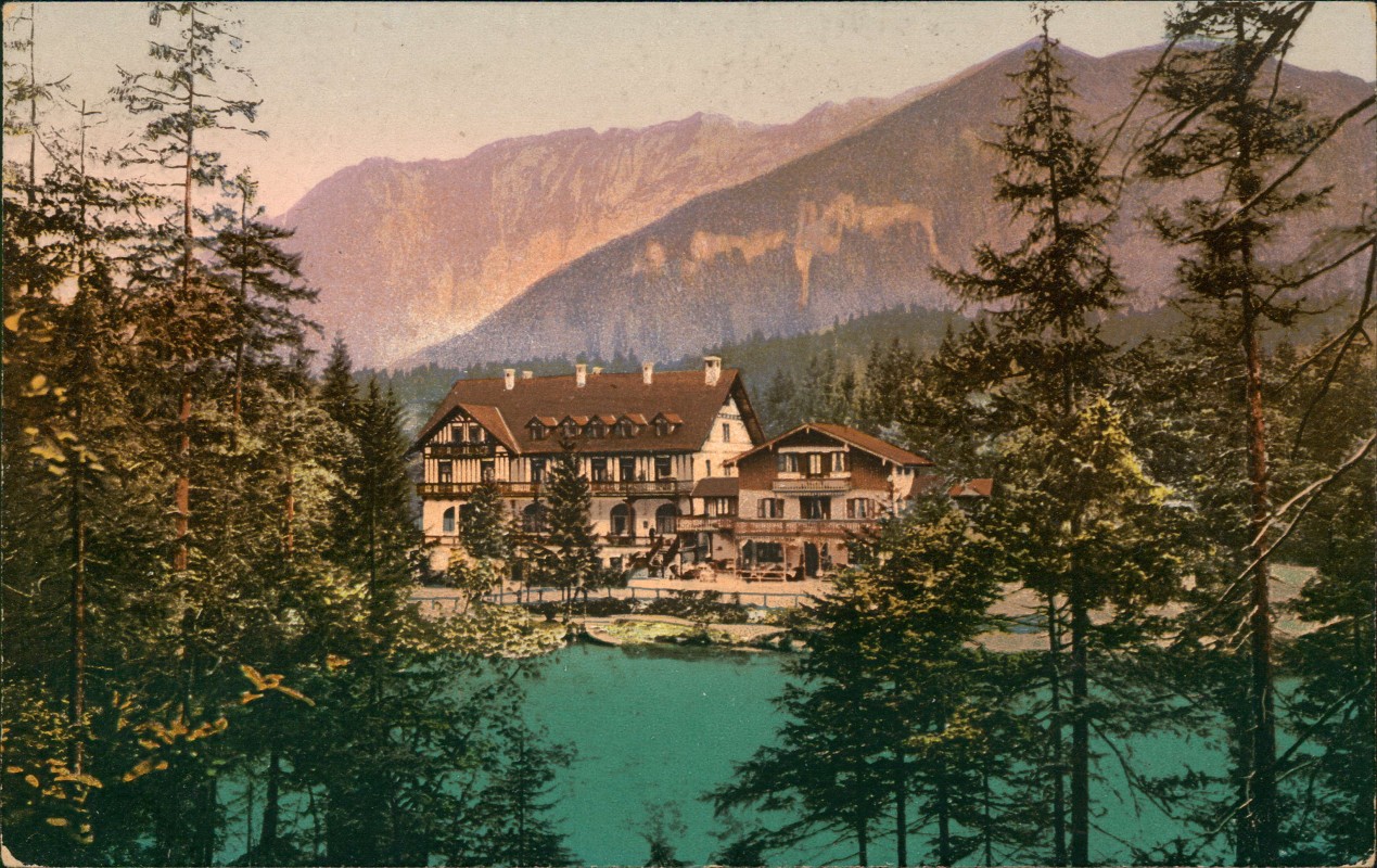 Ansichtskarte: Badersee mit Hotel - Grainau