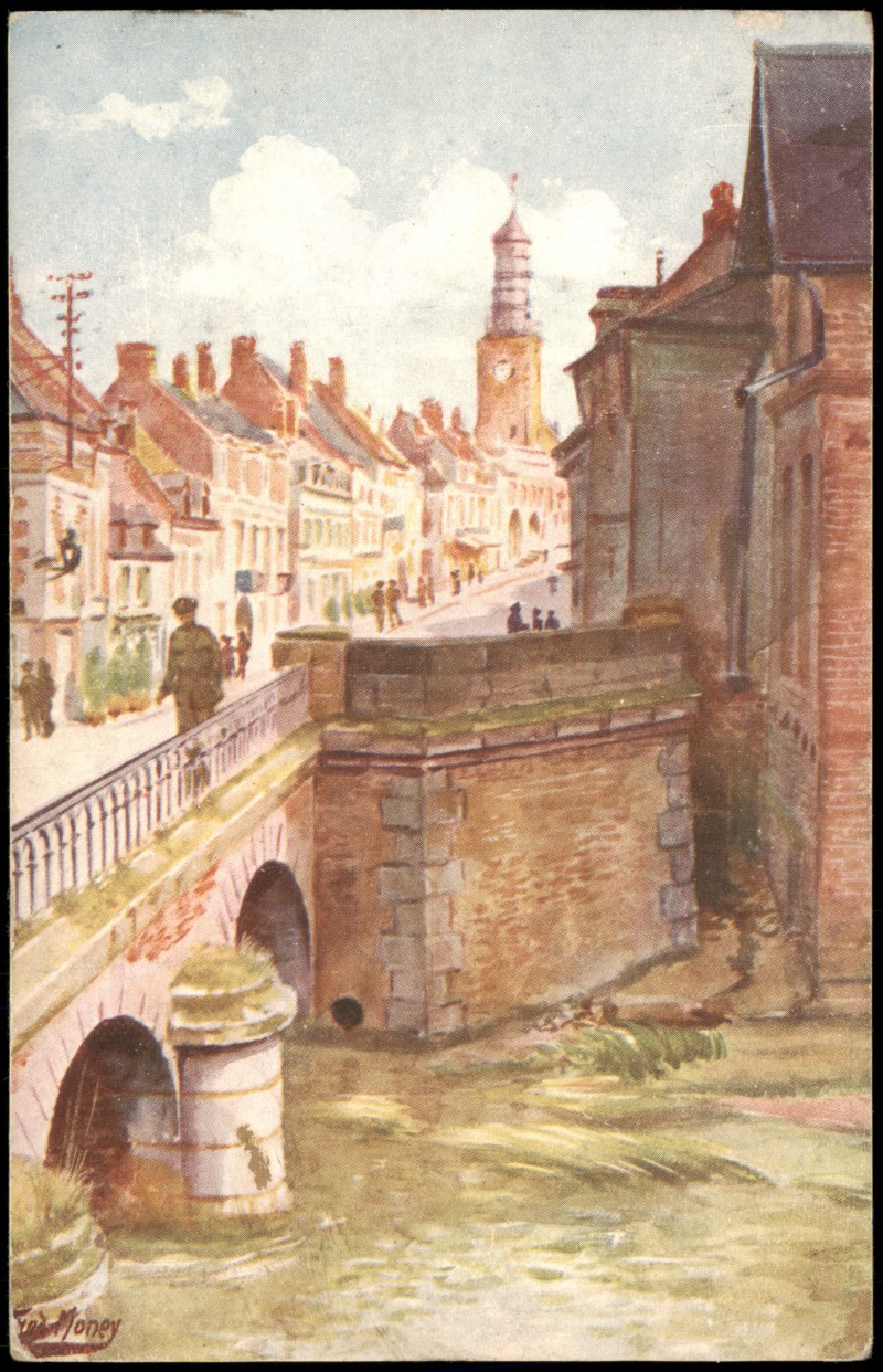 Ansichtskarte: La rue du bourg et pont - Künstlerkarte - Doullens