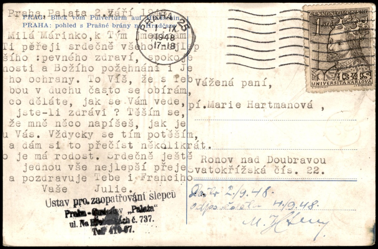 Ansichtskarte: Blick vom Pulverturm - Prag