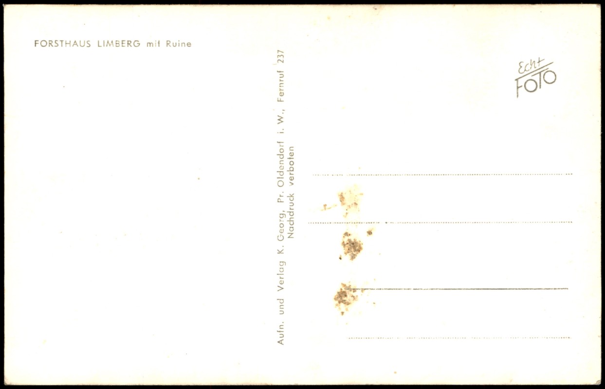 Ansichtskarte: FORSTHAUS LIMBERG mit Ruine. - Preußisch Oldendorf