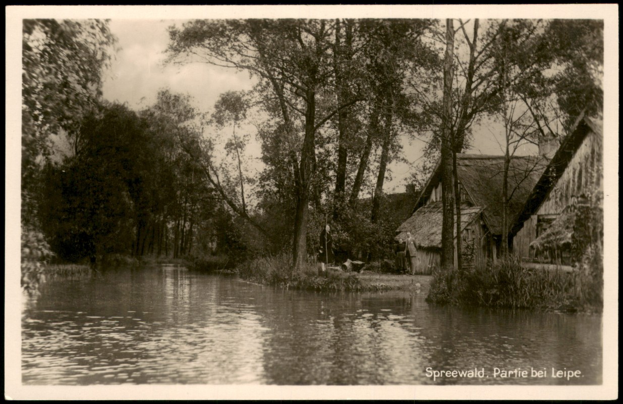 Foto Karte: Spreewald Partie Haus-Ansicht Mann davor - Leipe-Lübbenau (Spreewald)