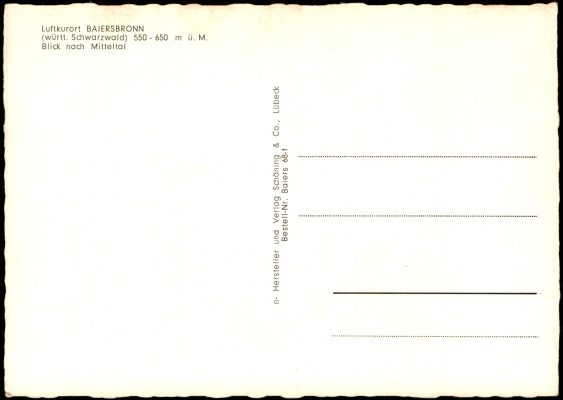 Foto Karte: Panorama-Ansicht Blick nach Mitteltal - Baiersbronn