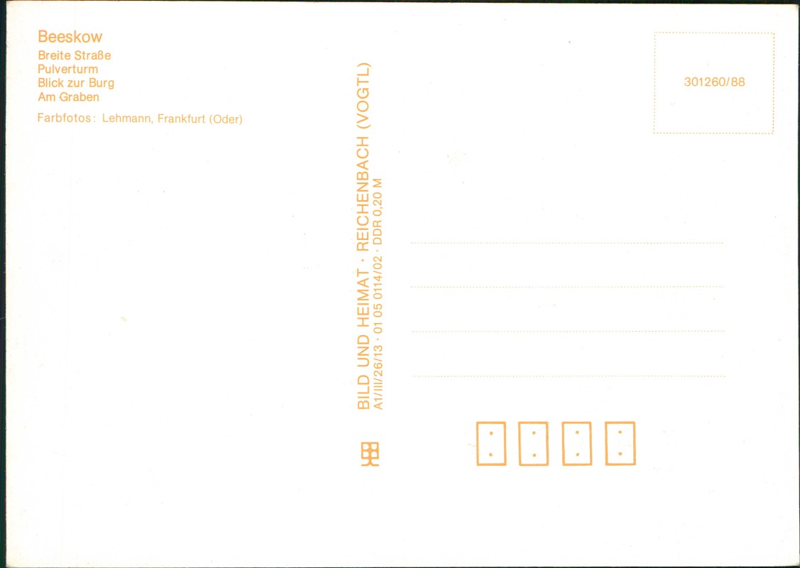Foto Karte: DDR MB mit Breite Straße Pulverturm Blick zur Burg, Am Graben - Beeskow
