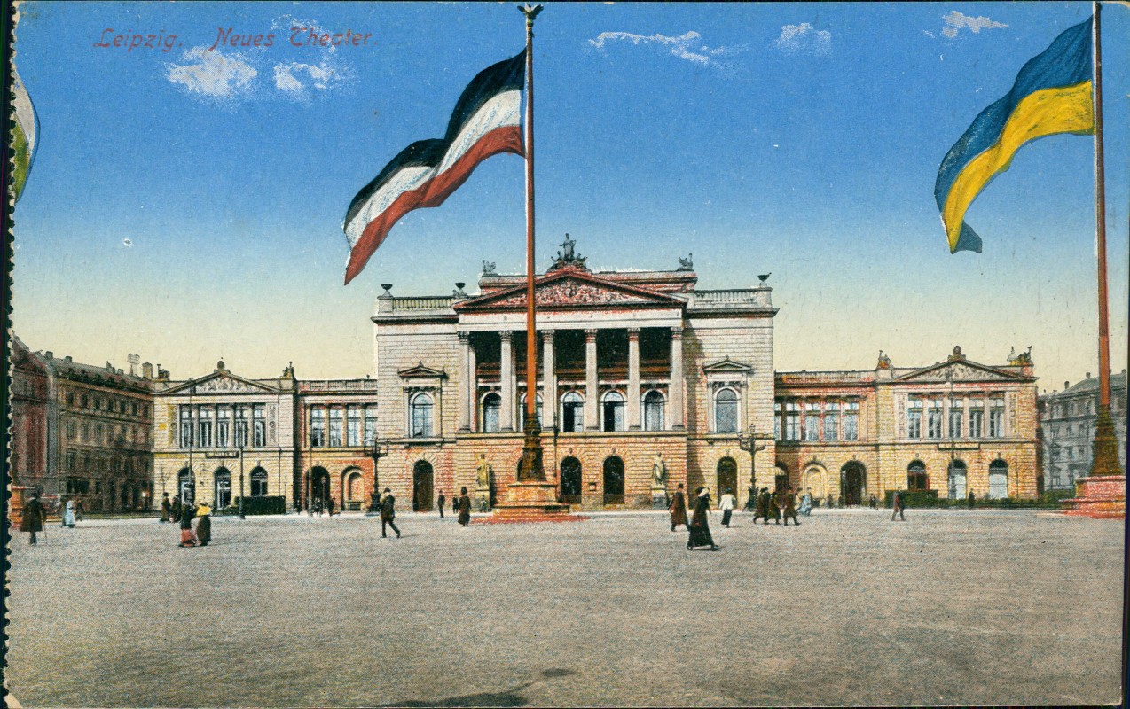 Ansichtskarte: Neues Theater Fahnen - Leipzig