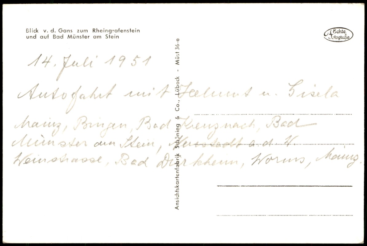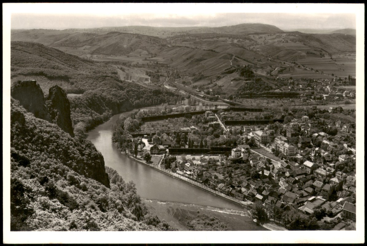 Ansichtskarte: Blick v. d. Gans zum Rheingrafenstein - Bad Münster am Stein-Ebernburg