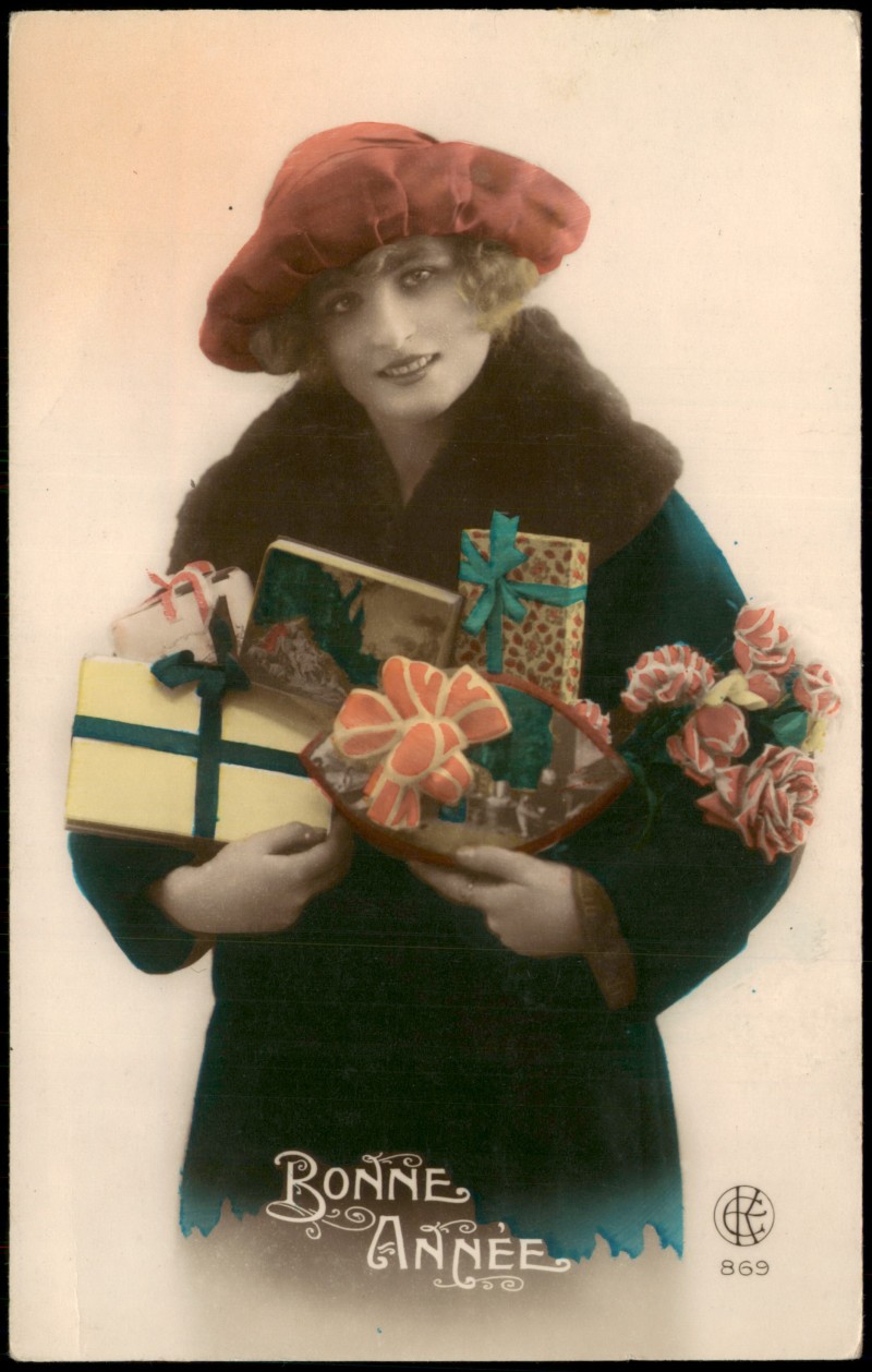Ansichtskarte: Neujahr Sylvester New Year Bonne anne Fotokunst schöne Frau France
