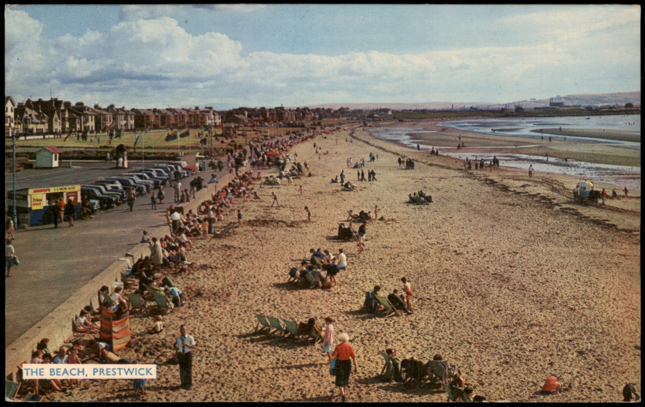 Ansichtskarte: Belebter Sandstrand mit Promenade - Prestwick