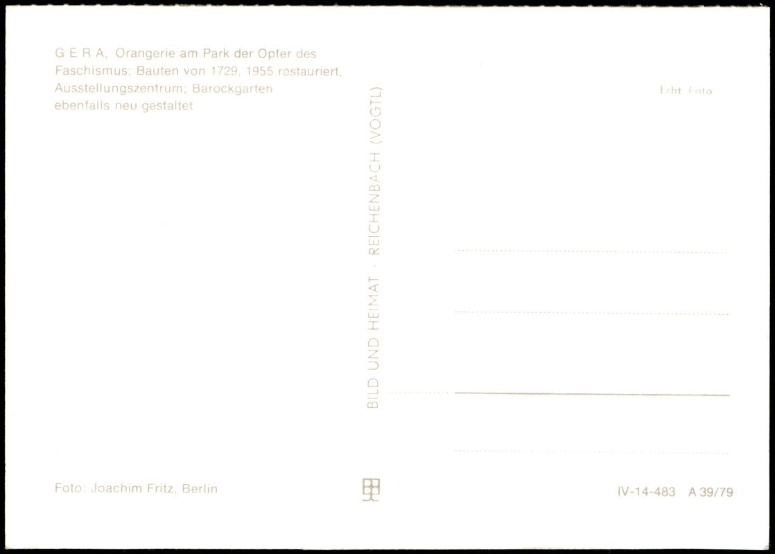 Foto Karte: DDR AK Orangerie am Park der Opfer des Faschismus - Gera