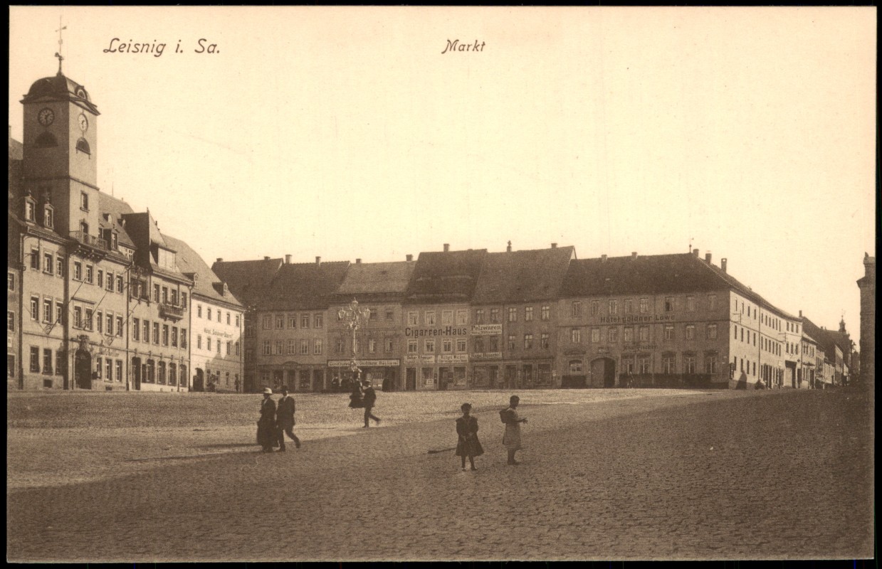 Ansichtskarte: Hotel Goldner Löwe Markt - Leisnig