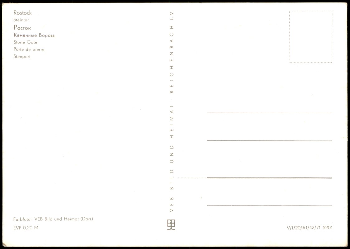 Foto Karte: DDR AK Partie am Steintor, Auto Verkehr - Rostock
