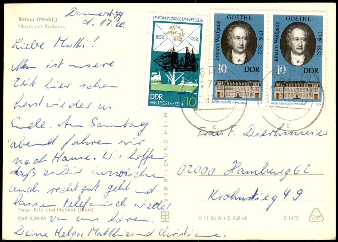 Ansichtskarte: Rehna Mecklenburg Markt mit Rathaus - Rehna