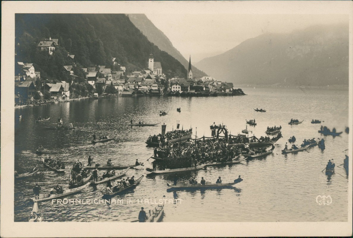 Ansichtskarte: Frohnleichnam Boote auf dem See - Hallstatt