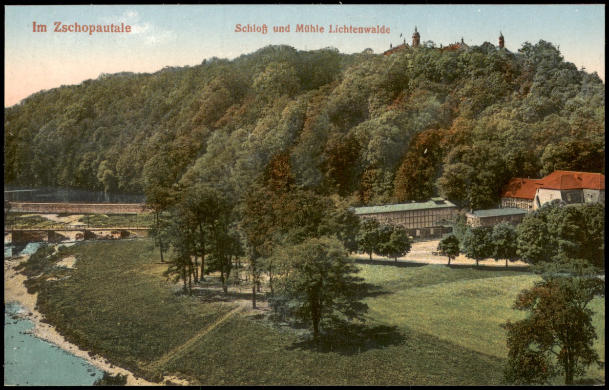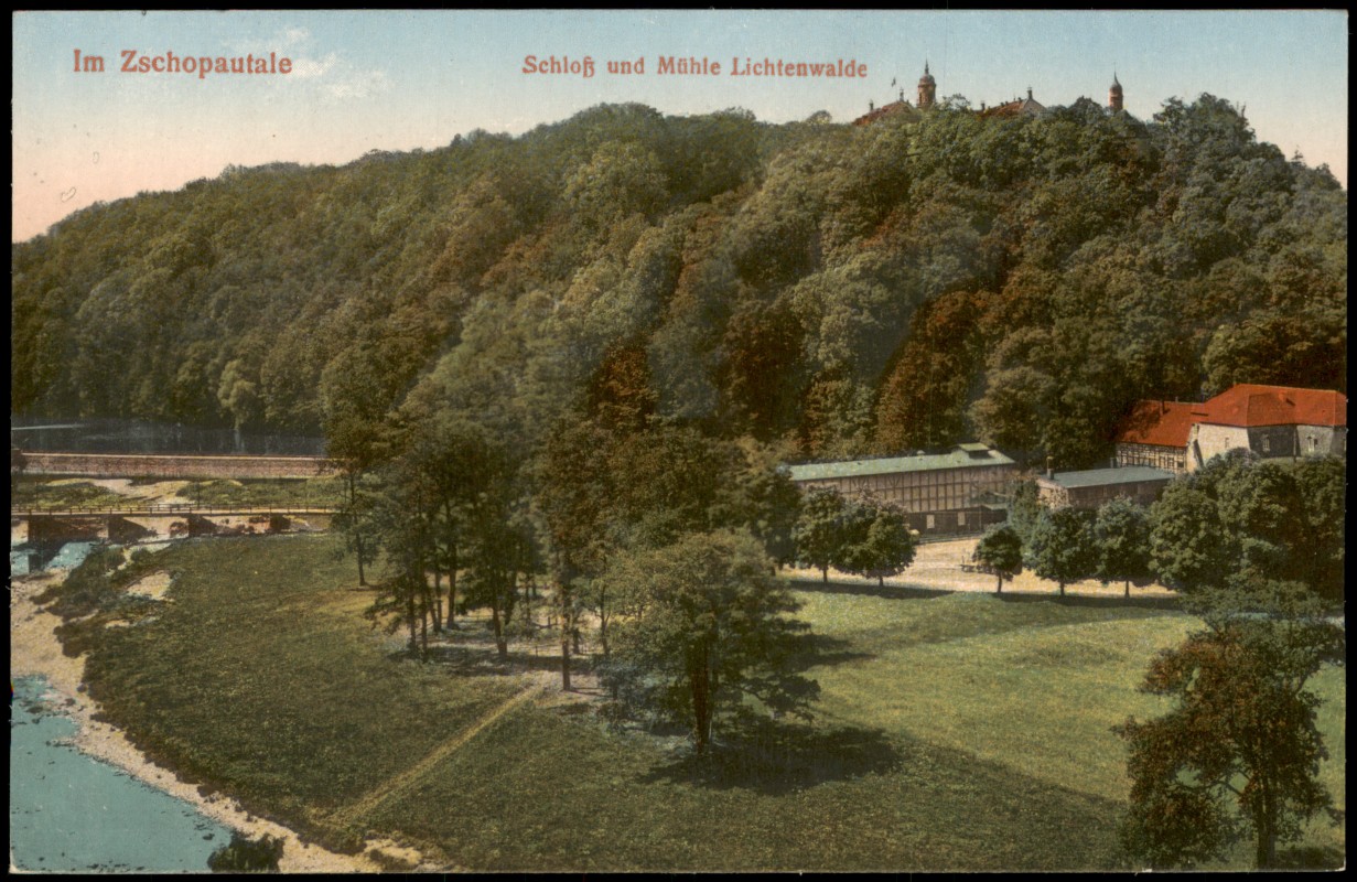 - Ansichtskarte Lichtenwalde-Niederwiesa Schloß und Mühle Lichtenwalde. 1915
