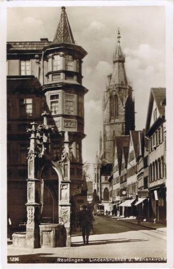 Ansichtskarte: Lindenbrunnen und Marienkirche - Reutlingen