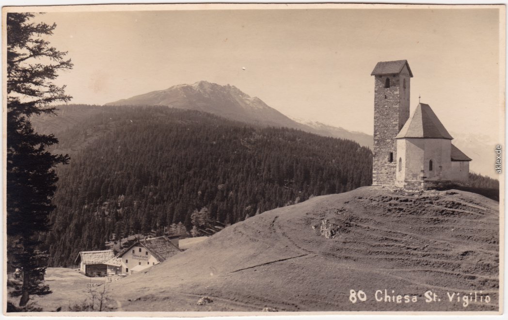 Foto Karte: Panorama über die Berge und die Kapelle - Chiesa St. Vigilio
