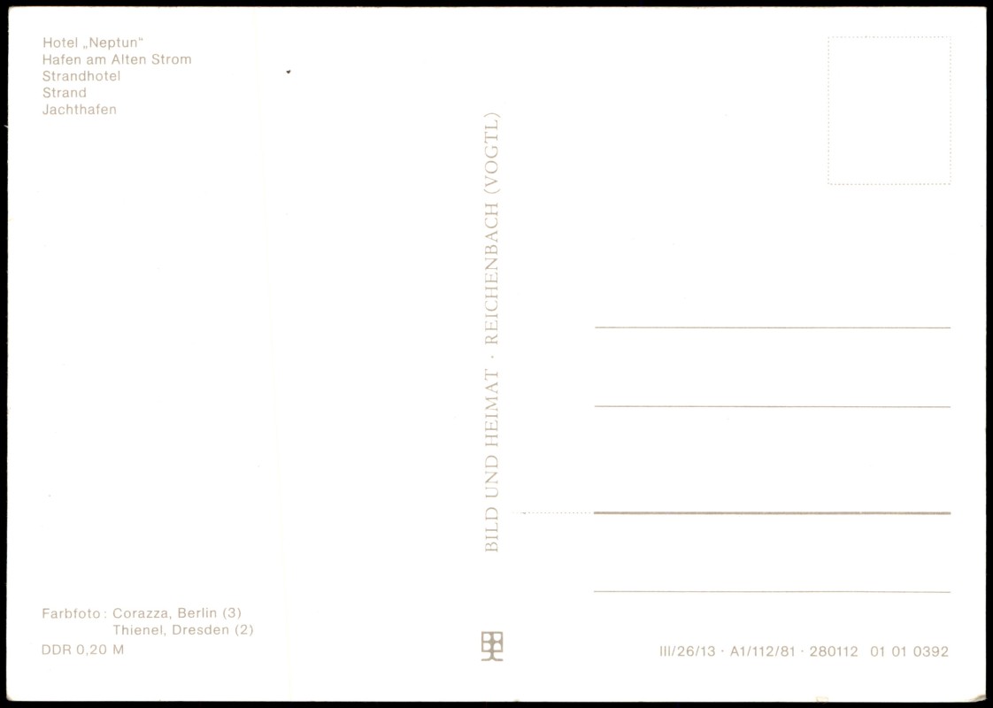Ansichtskarte: Hotel "Neptun", Hafen am Alten Strom, Strandhotel, Strand, Jachthafen - Warnemünde-Rostock
