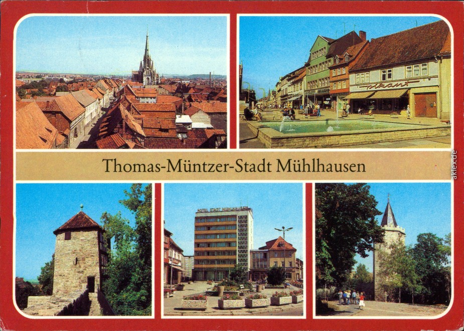 - Blick auf die Stadt, Wilhelm-Pieck-Platz, Hospitalturm, Hotel "Stadt Mühlhausen", Rabenturm