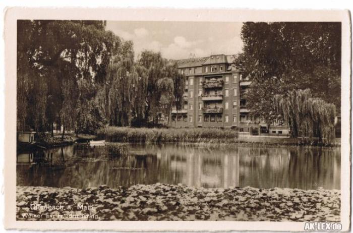 Foto Karte: Weiher am Friedrichsring ca. 1935 - Offenbach (Main)
